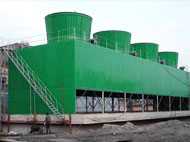 塔體、水槽及面板均采用具有良好耐腐蝕性能的FRP材質,并在膠衣樹脂中加有光穩定劑,具有良好的抗老化性能,經久不變色。塔體鋼結構件在加工后采用鍍鋅處理,提高冷卻塔的耐腐蝕性能,在正常使用壽命內,不需另外防腐。