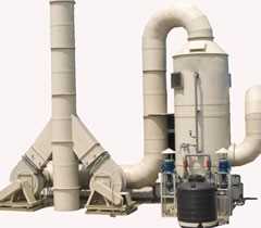 玻璃鋼洗滌塔是硫酸生產(chǎn)線的主要設(shè)備,該塔的主要作用是:由塔底進(jìn)塔的帶有礦塵、砷、硒、氟、二氧化硫等雜質(zhì)和二氧化碳?xì)怏w,經(jīng)填料層,由塔頂排出。而稀硫酸通過塔頂?shù)膰娮靽娏埽怪盍蠈又袣庖撼浞纸佑|,除去雜質(zhì),達(dá)到凈化氣體的作用。